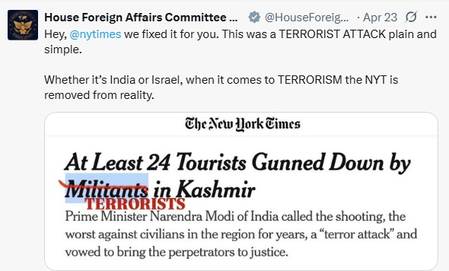 Posted inNational 'This was a terror attack, plain and simple', US House Committee slams NYT's Pahalgam report by IANSApril 25, 2025April 25, 2025