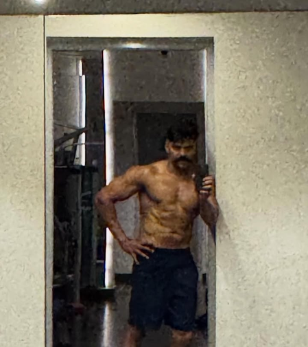Taking to his Instagram page, Arya had posted a picture of his well toned body and written,”Rain Rain pls stay away .. can’t hold this forever. #Vettuvam Climax continues @ranjithpa”